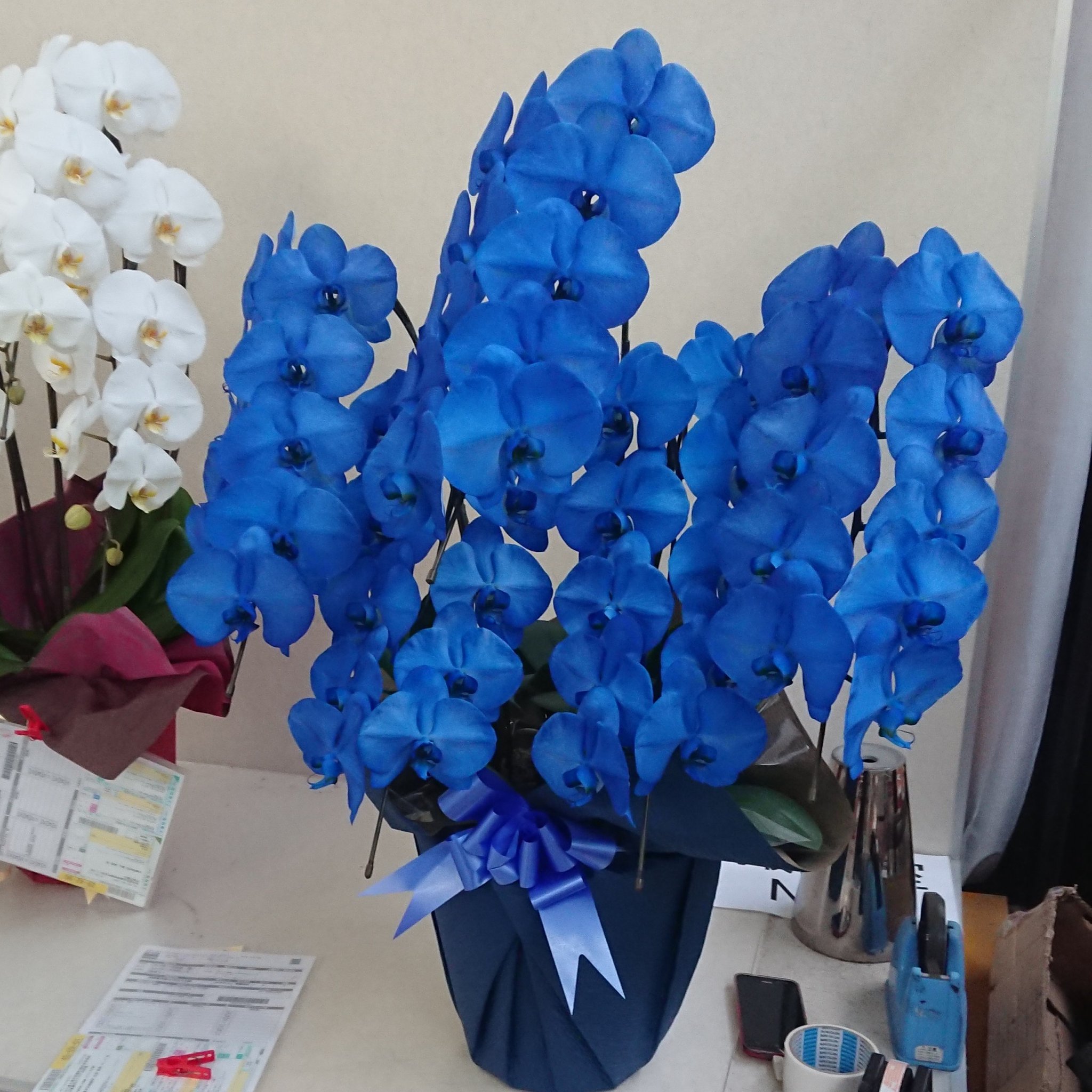 カラー胡蝶蘭 スマイル 大型の青い胡蝶蘭 迫力満点 ご注文 ありがとうございました お客様からのご要望 折角 開店記念に贈るのだから 一味違う花が欲しい とのこと 配達に行くのが 楽しみです 胡蝶蘭ギフト カラー胡蝶蘭 カラー